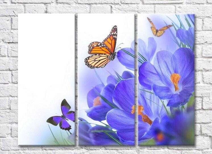 Картина ArtPoster Butterflies on a background of Lilac crocuses (3448876)