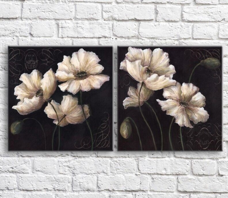 Картина ArtPoster White poppies on a Black background, oil, diptych (3467679)