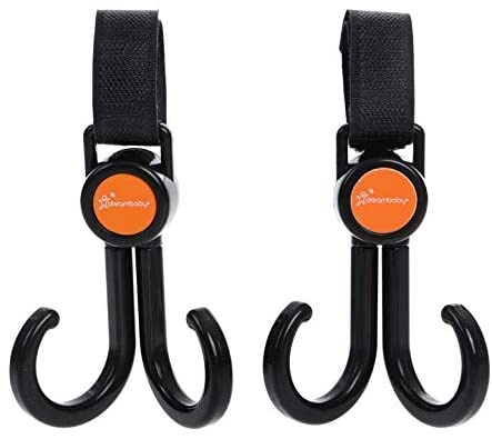 Двойные крючки Ezy-Fit с двойными вращающимися крючками - удобный способ держать вещи в пределах досягаемости. Легко крепится к ручке коляски.