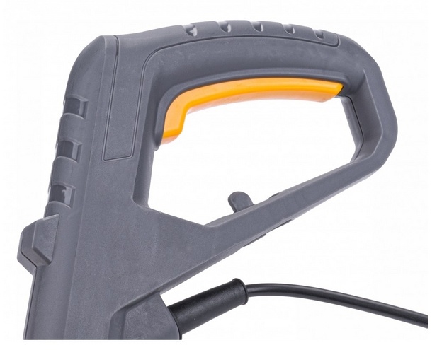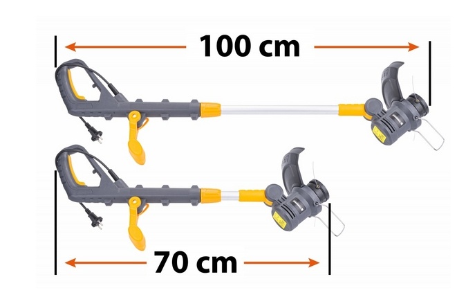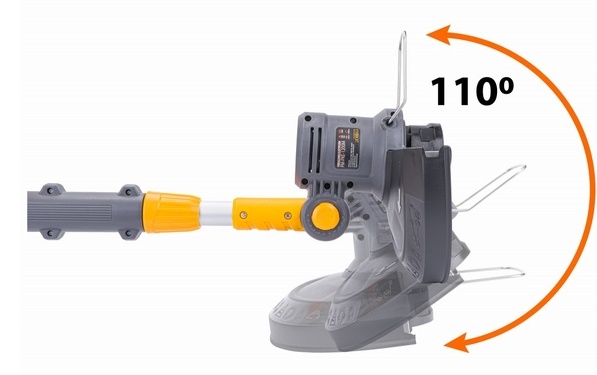 - Электрический триммер помимо регулировки рукоятки имеет также функцию поворота всей рукоятки по отношению к головке с мотором.
