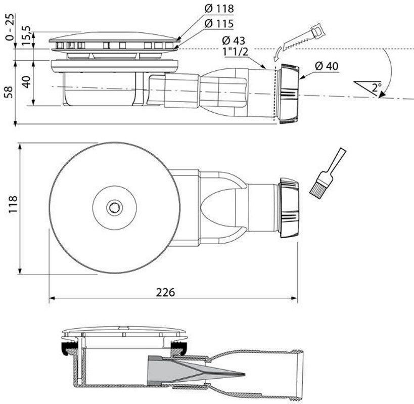 Сифон для душевого поддона Wirquin Slim H40 D90 (30722859/219218B)