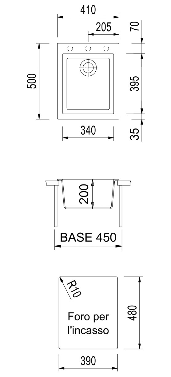 Размер мойки410x500 мм