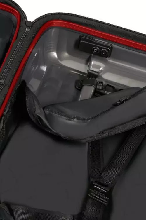 * Помимо регулируемых по длине ремней внутри расположены перегородки, препятствующие выпадению предметов. Одна из них встроена в подкладку, другая съемная, выполненная в виде жесткого чехла.