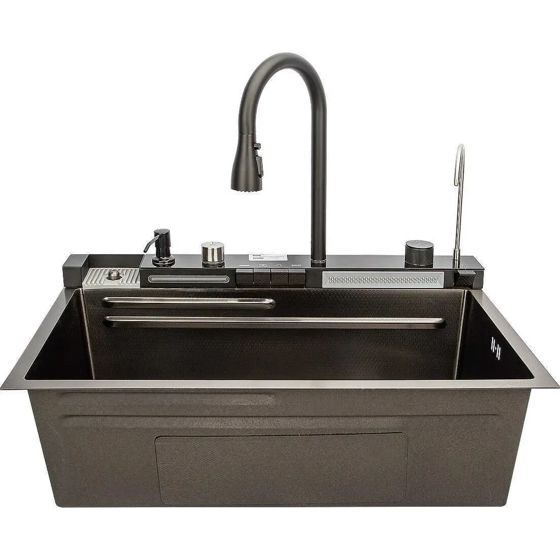 Комплектациядозатор моющего средства, коландер, кран для фильтрованной (питьевой) воды, разделочная доска, решетка/корзина для сушки, смеситель