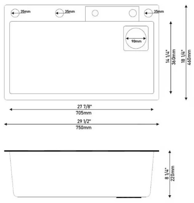 Размер мойки750х460 мм