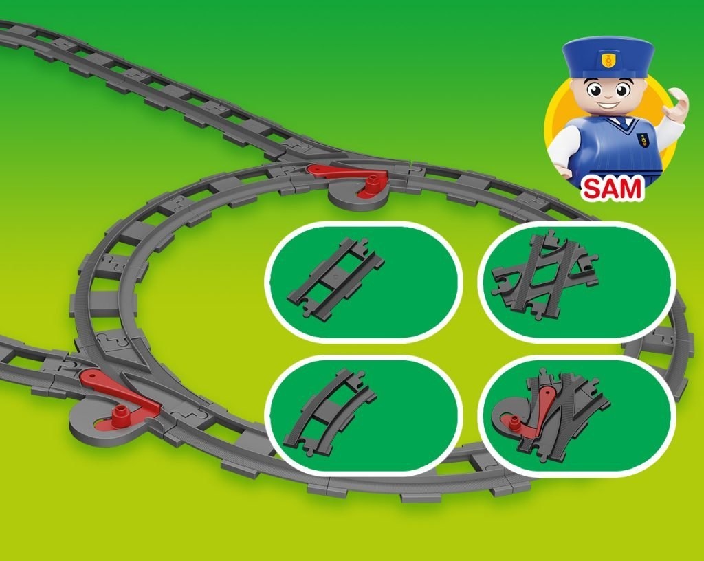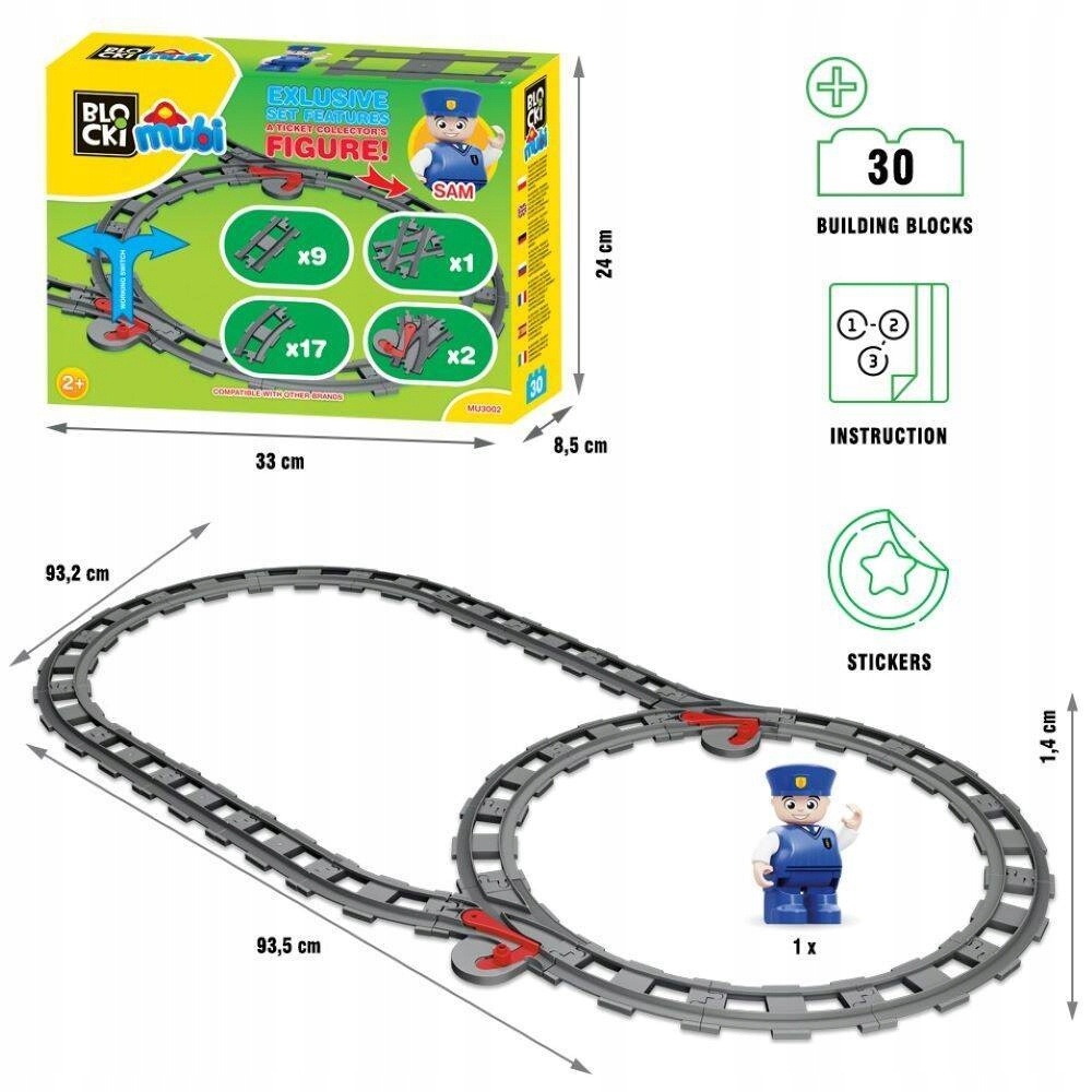 В набор MUBI BLOCKS MUBI Train Tracks MU3002 также входит уникальная фигурка, которую вы не найдете в других наборах блоков из серии для малышей. Кондуктор Сэм проверит ваш билет и вместе с вами отправится в незабываемое путешествие на поезде!