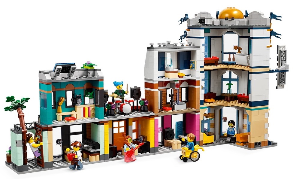 Маленькие строители могут создать 3 разные модели городов с помощью этого игрового набора LEGO Creator 3в1. Они могут застроить Главную улицу 4 зданиями, перестроить ее в 4-этажный жилой дом в стиле арт-деко с парком или рыночную улицу с аркой с фотостудией и цветочным магазином. В каждый набор также входят 6 минифигурок для ролевых игр. Соберите 3 набора, и 3 отдельные модели можно будет собрать вместе, чтобы создать одну очень большую городскую сцену.