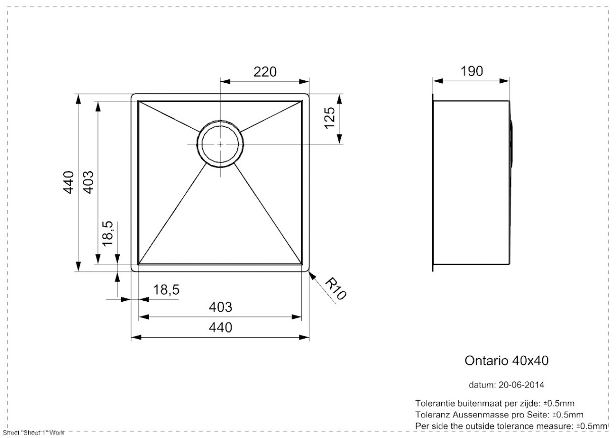 Размер мойки440х440 мм