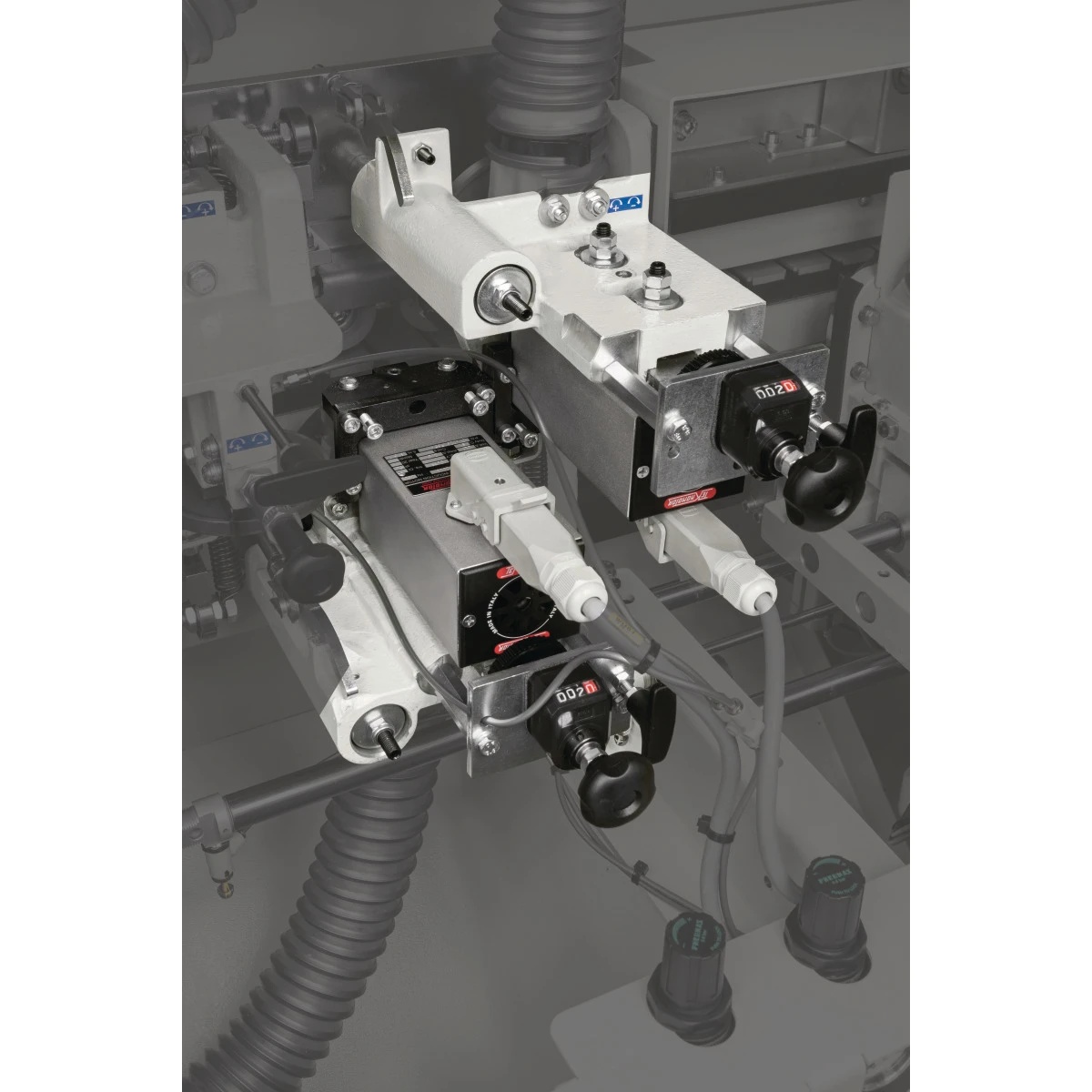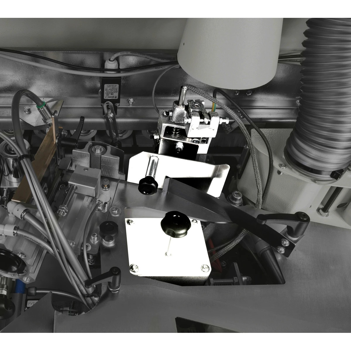 - S (Scraper): наличие узла циклевания кромки (радиусная цикля). Он предназначен для финишной обработки кромок из ПВХ/АБС, удаляя микронеровности после фрезерования и обеспечивая идеальный радиус.