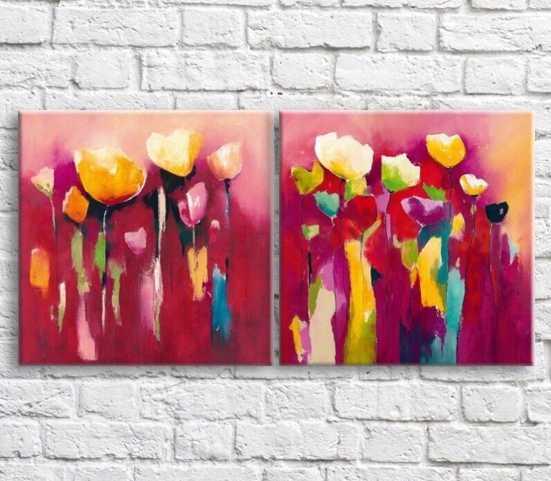Картина ArtPoster Multicolored poppies in oil on a Red background (3467776)