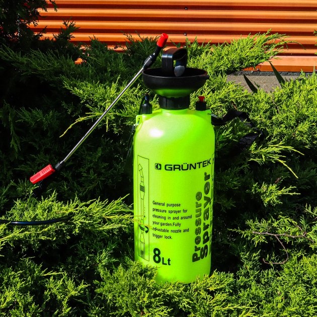 Опрыскиватель ручной GRUNTEK HS-8-1 — аппарат, предназначенный для распыления удобрений, пестицидов, других жидкостей. Оснащен пластиковым баком объемом 8 л, который рассчитан на рабочее давление 2-3 бар.