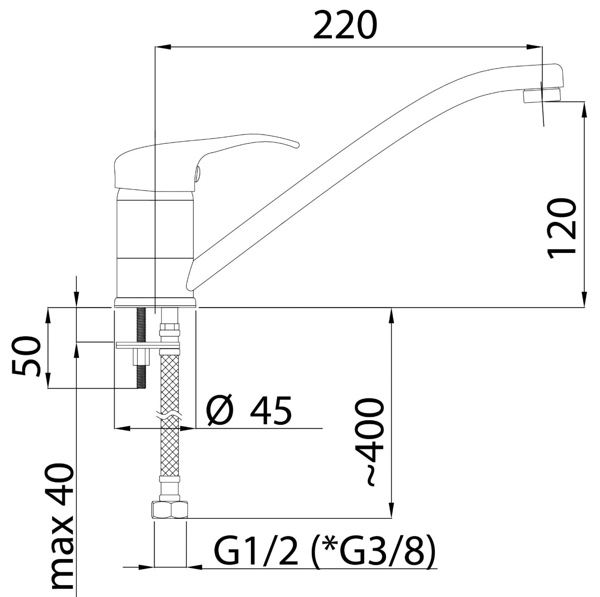 Длина излива220 мм