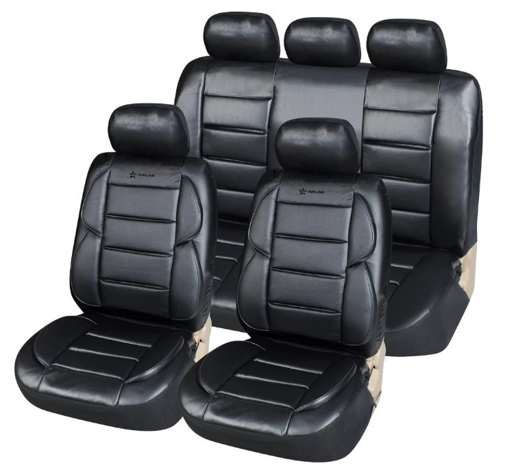 Предназначены для защиты штатной обивки сидений от механических повреждений, загрязнения и выцветания, а так же преображают внешний вид салона. Чехлы имеют универсальный размер и подходят на сиденья большинства легковых автомобилей. Модель сшита из износостойкой, высококачественной искусственной ПВХ кожи в сочетании с тянущимся гладким полиэстером, который обеспечивает хорошее прилегание к сиденьям. Чехлы имеют специальный ослабленный шов в месте расположения подушки безопасности для ее беспрепятственного открытия. Для облегчения монтажа подголовников в местах их крепления предусмотрены открывающиеся липучки. Передние чехлы для удобства дополнительно оснащены боковой поддержкой спины.