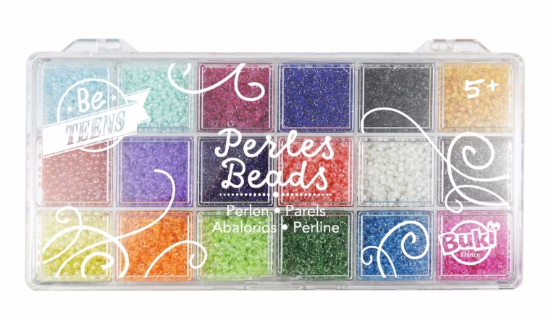 В пластиковой коробочке Buki Be Teens ребенок найдет непрозрачные бусины 18 разных цветов. С их помощью можно создавать различные украшения.