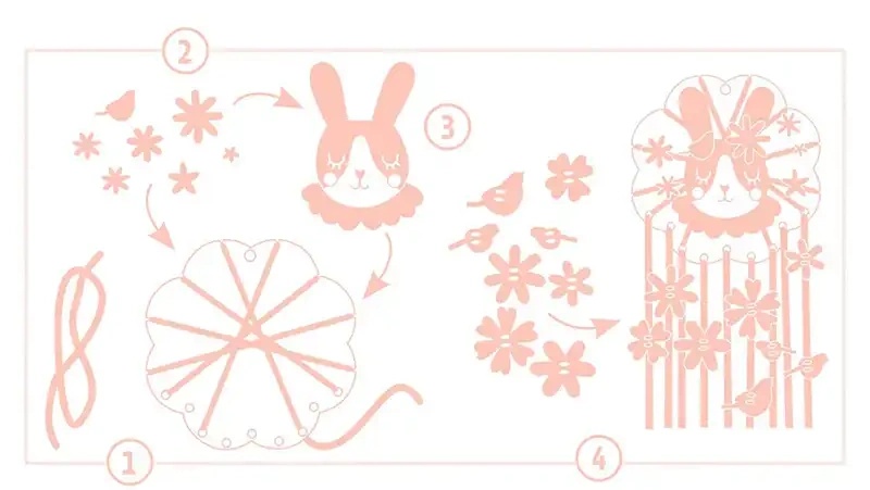 Дети украшают кролика разноцветными лентами, а затем украшают подставку толстыми наклейками. Красивый декоративный предмет, который можно повесить в спальне, чтобы отогнать плохие сны.