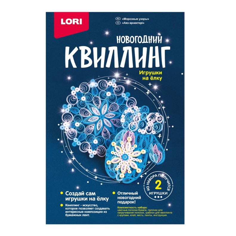 Квиллинг – это искусство, которое позволяет создавать интересные композиции из бумажных лент. Несмотря на то, что процесс довольно трудоемкий, он принесет пользу и удовольствие. Во время работы у ребенка развивается образное мышление, мелкая моторика, усидчивость и аккуратность. Готовые поделки станут отличной игрушкой на ёлку! Комплектация: Цветные полоски бумаги, палочки для накручивания полосок,шаблон для квиллинга с кругами, клей, кисть, пайетки, ленты, подробная инструкция.