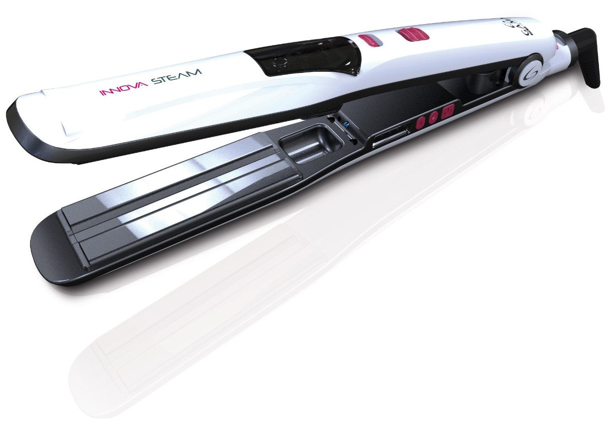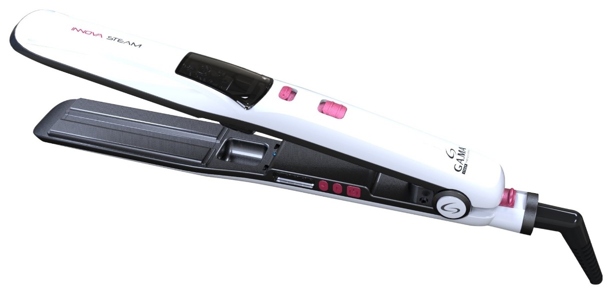 INNOVA STEAM — это первый паровой выпрямитель для волос от GA.MA, который дополняет уже полюбившуюся линейку INNOVA. Он может быть использован и как классический выпрямитель, и с функцией микро-парообразования для деликатного ухода за волосами и увлажняющего эффекта. Чтобы использовать эту функцию и только для первого использования, дайте губке внутри резервуара польность пропитаться в течение не менее 15 минут, чтобы пар был правльно выпущен. Высокая степень увлажнения, которая достигается при помощи этого выпрямителя, делает все типы волос, включая вьющиеся и кудрявые, шелковистыми и идеально гладкими. Технология Nano Silver обладает анти-бактериальными свойствами, удаляя с нагревательных пластин любые бактерии, которые могут навредить волосам. Более того, цифровой дисплей помогает держать температеру под контролем в любое время, позволяя настраивать ее в зависимости от типа выпрямляемых волос от 130 до 230 градусов С.