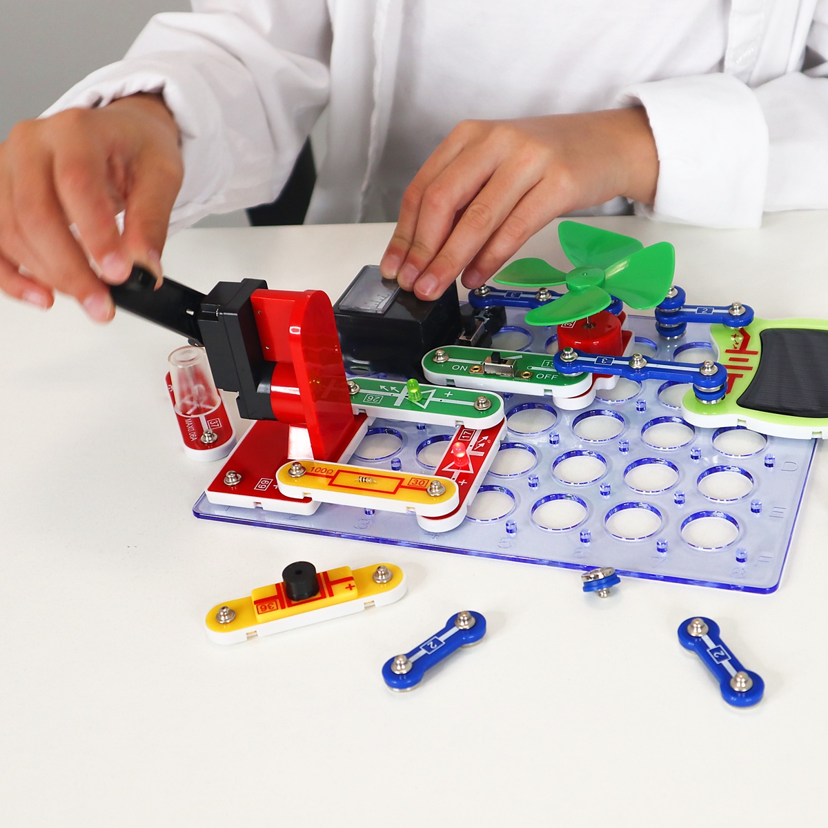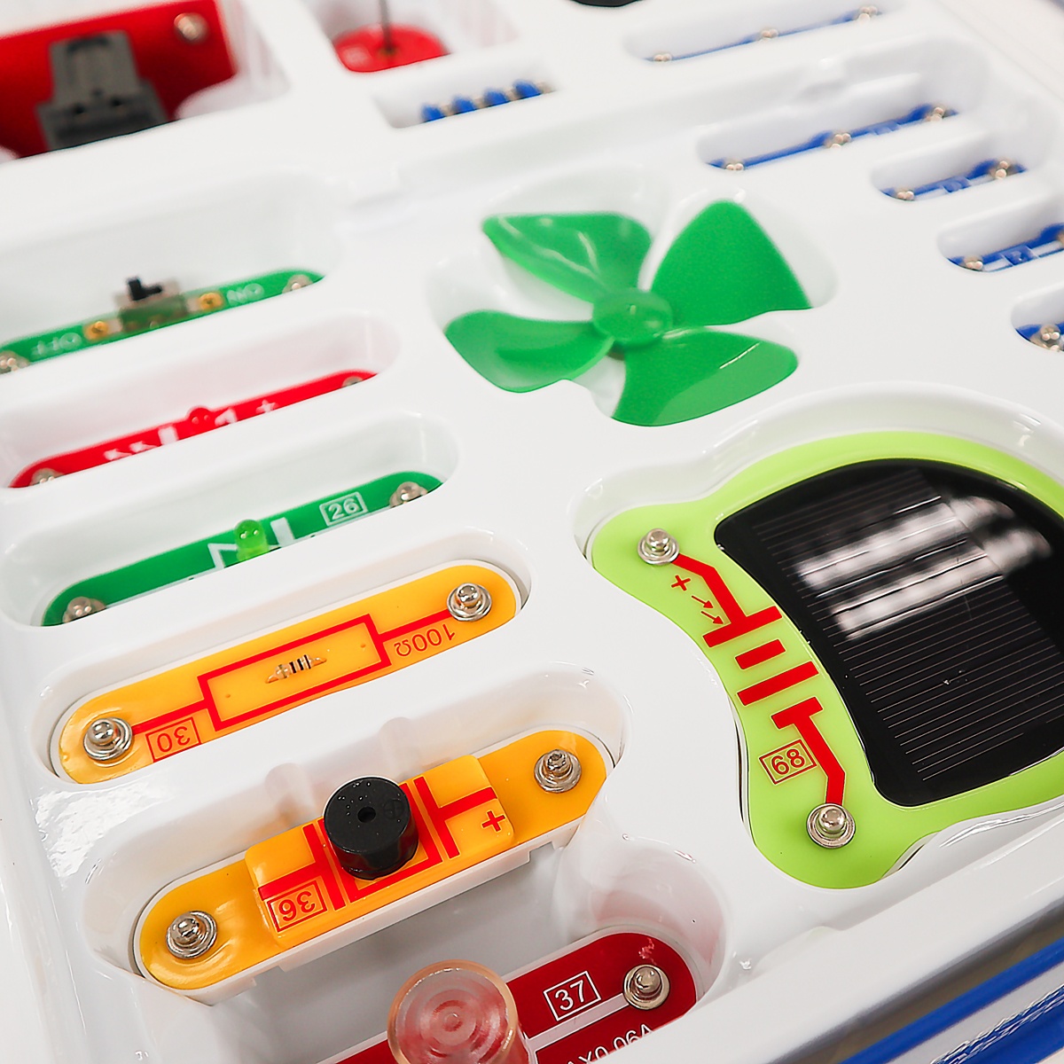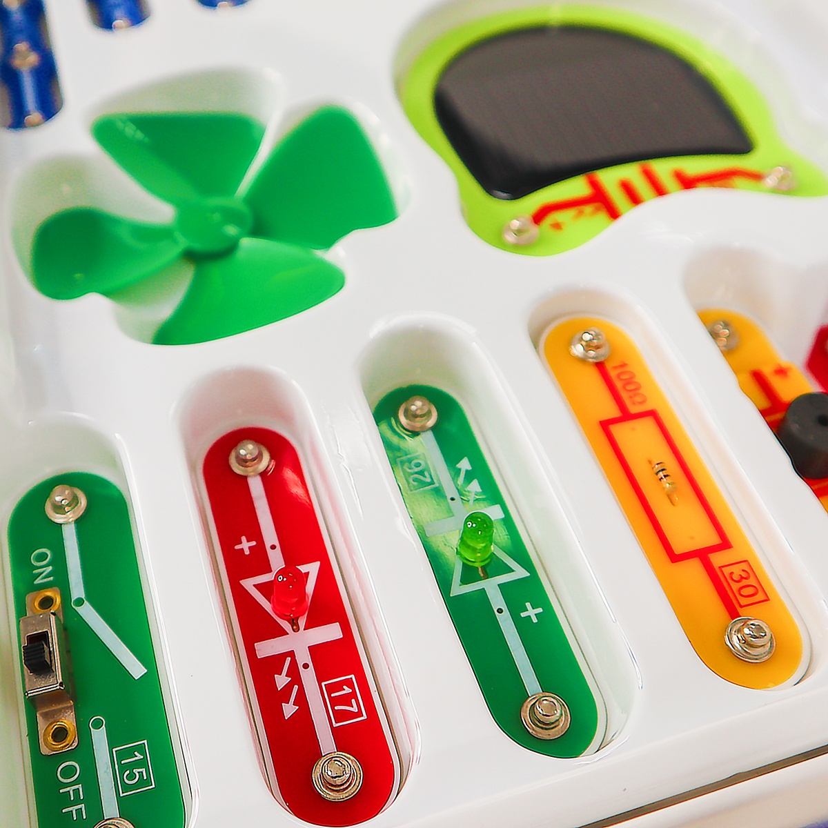 Конструктор поможет изучить экологически чистые источники питания, такие как ветряк и солнечная панель, чтобы лучше узнать мир электроники. Благодаря оригинальному способу соединения деталей вы сможете достичь быстрого и эффективного результата без использования пайки.