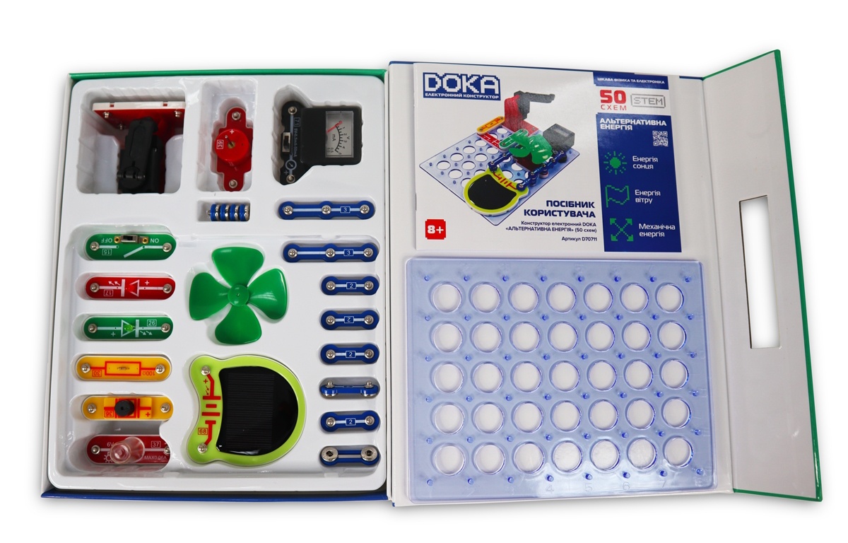 Конструктор электронный DOKA АЛЬТЕРНАТИВНАЯ ЭНЕРГИЯ (50 схем) несомненно понравится юным исследователям!