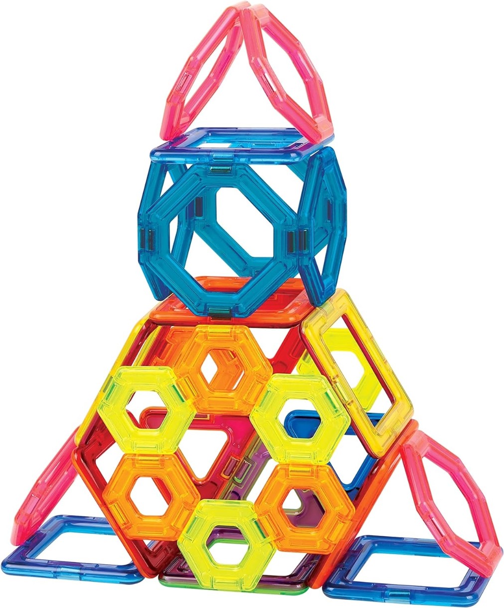 Этот фантастический магнитный конструктор Magformers, новинка 2023 года, содержит новые детали мини-шестиугольников и мини-восьмиугольников, а также квадраты и треугольники.