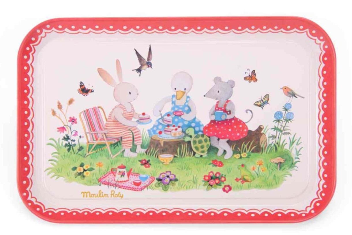 Чайный сервиз La Grande Famille идеально подходит для детей, которые любят ролевые игры и воображаемые пикники. Посуда изготовлена из окрашенного металла, украшена изящными иллюстрациями и ретро-отделкой и упакована в прочный картонный чемодан с иллюстрациями. В набор входит всё необходимое для полноценной сервировки: чайник, 4 чашки, 4 блюдца и поднос.
