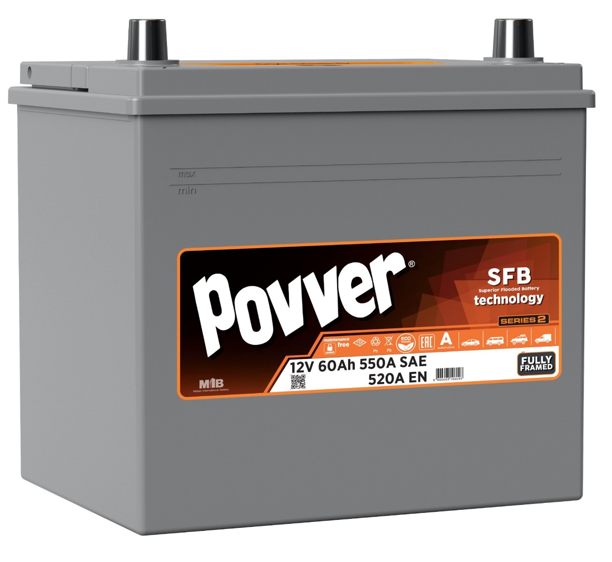 Автомобильный аккумулятор Povver 12V 60Ah 550A (D23.60.052.B) Left