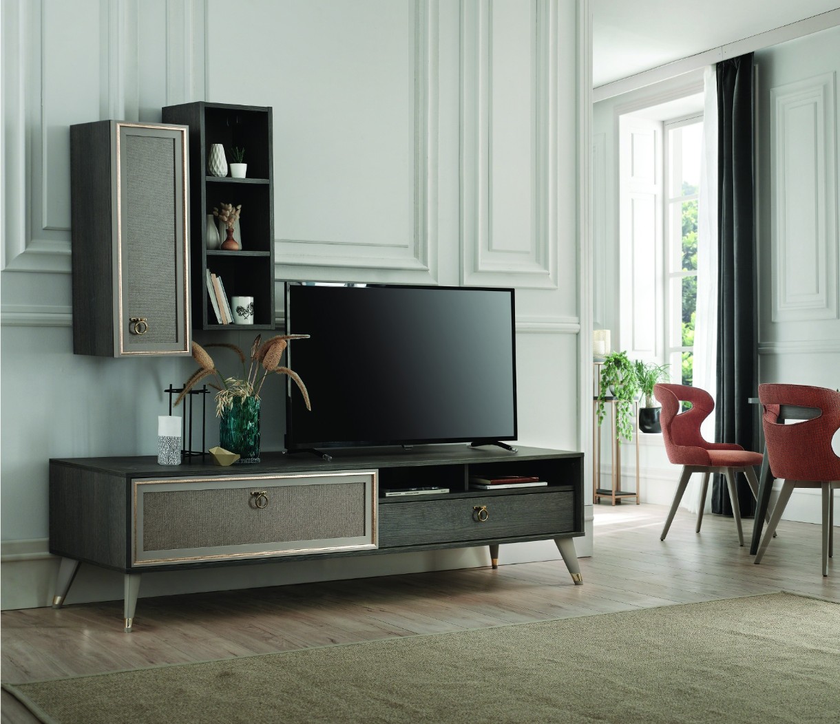 Витрина Dogtas Hector TV 3200364057 Oak Anthracite/Grey/Gold