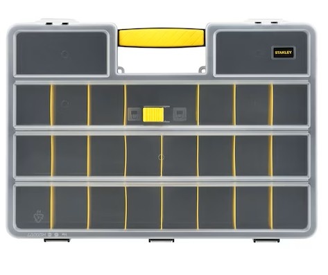 Органайзер Stanley 1-92-762 из серии "199" — это практичное решение для хранения и транспортировки мелких деталей, таких как крепежные изделия, метизы или фурнитура. Он изготовлен из прочного пластика, что обеспечивает легкость конструкции и долговечность. Органайзер оснащен 25 съемными отделениями с переставными перегородками, что позволяет гибко настраивать размеры секций под конкретные нужды пользователя.Прозрачная крышка из поликарбоната дает возможность легко видеть содержимое без необходимости открывать органайзер. Для надежной фиксации крышки предусмотрены защелки и дополнительный сдвижной замок, предотвращающий случайное открывание и смешивание содержимого во время переноски. Удобная ручка с литой накладкой облегчает транспортировку. Размеры органайзера составляют 45,7 x 32,7 x 7,9 см, что делает его компактным, но вместительным инструментом для организации рабочего пространства.