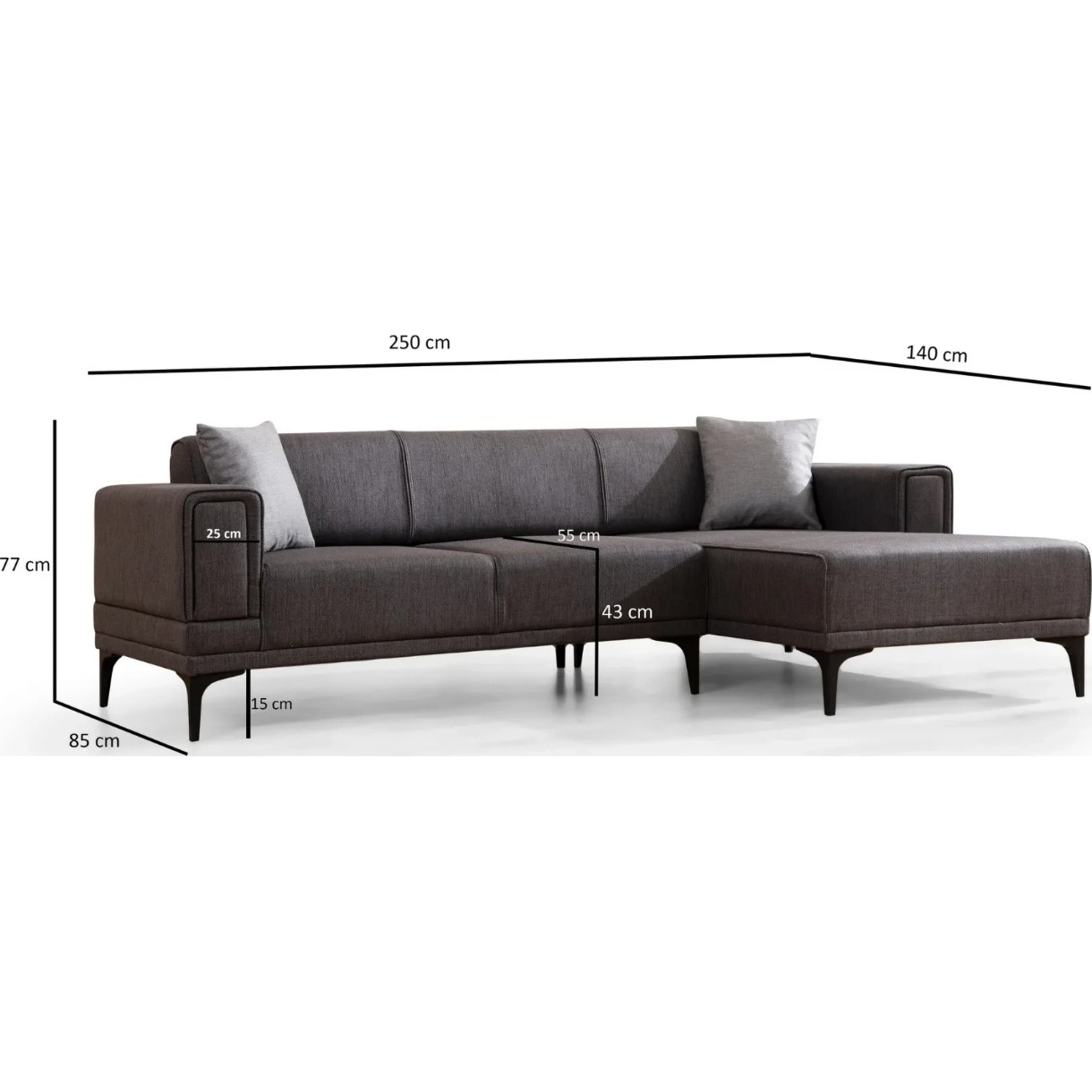 Угловой диван Trendy Horizon Dark Grey R 250x140x77cm GTR003377