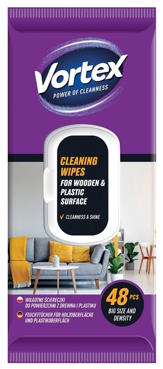 Салфетки влажные для уборки Vortex Wooden & Plastic Surface 48pcs