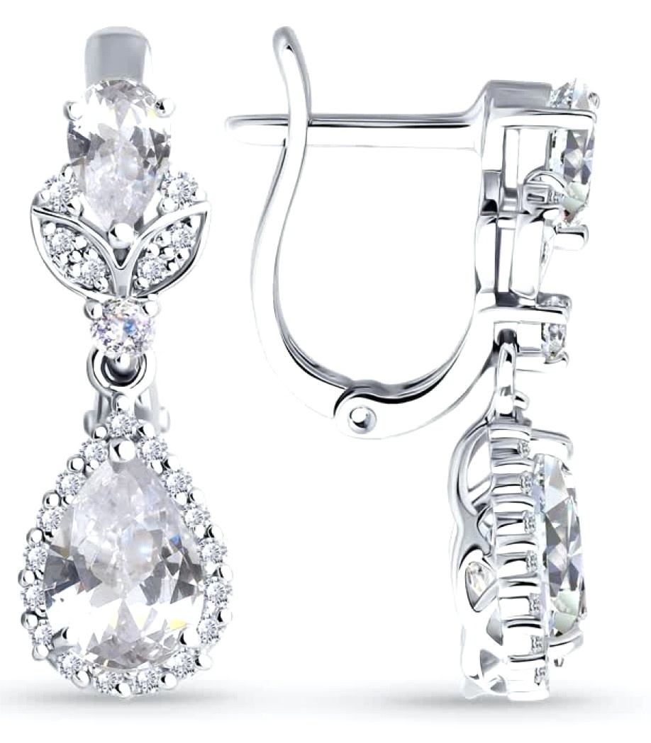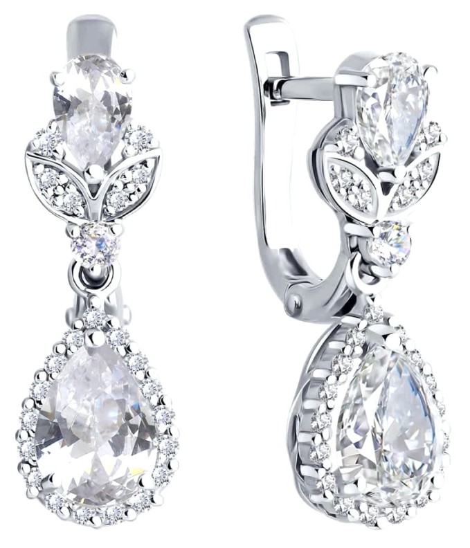 Серьги из белого золота с бриллиантом и горным хрусталём Sokolov 72-00359-3 3,23g