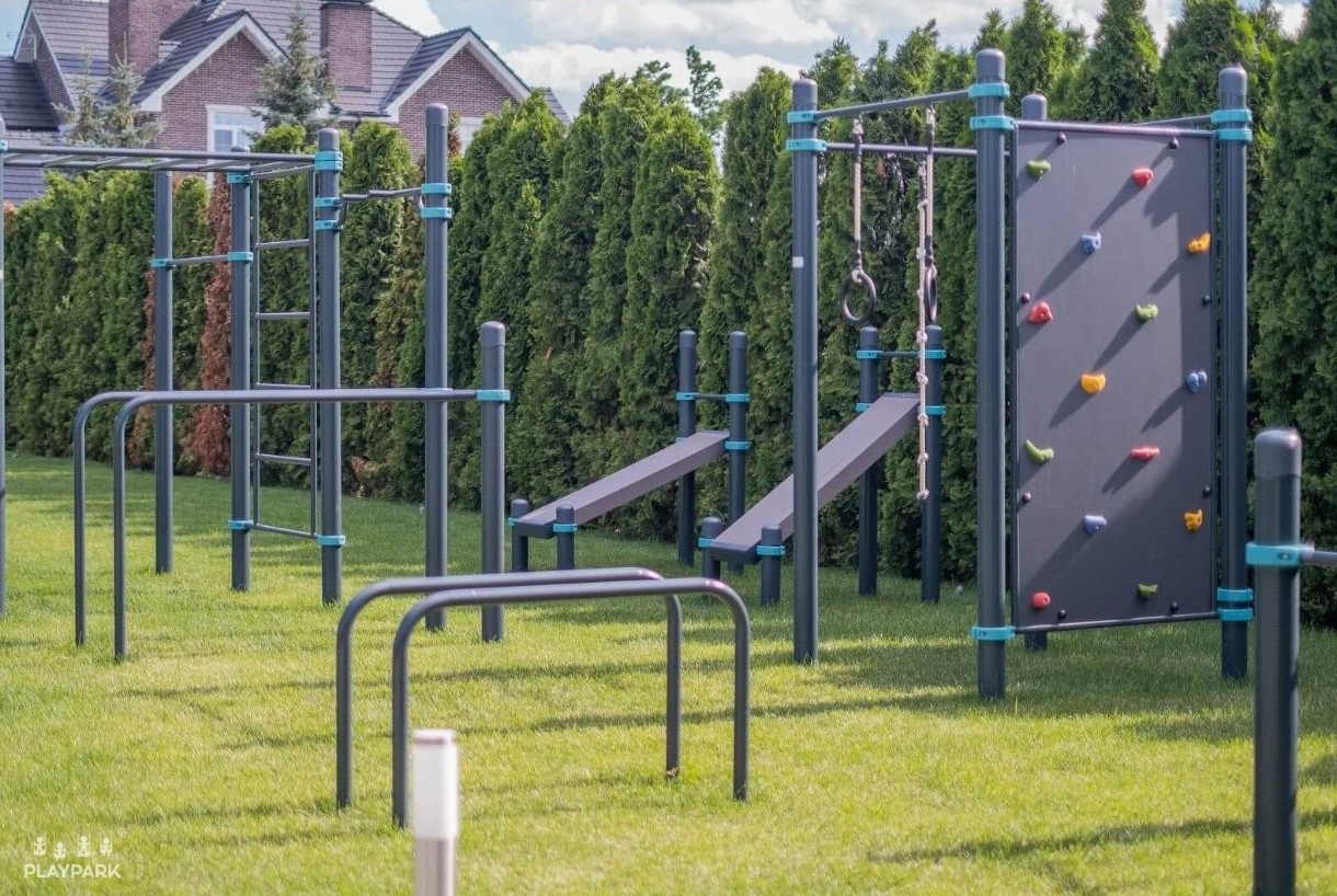 Комплектация2 разноуровневых турника, брусья, шведская лестница, скалодром