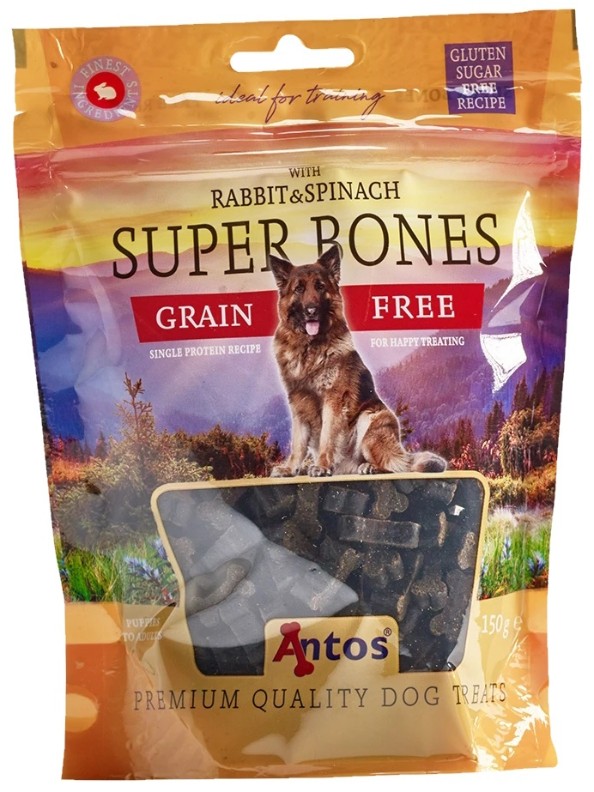 Лакомства для собак Antos Super Bones Rabbit & Spinach 150g (20424)