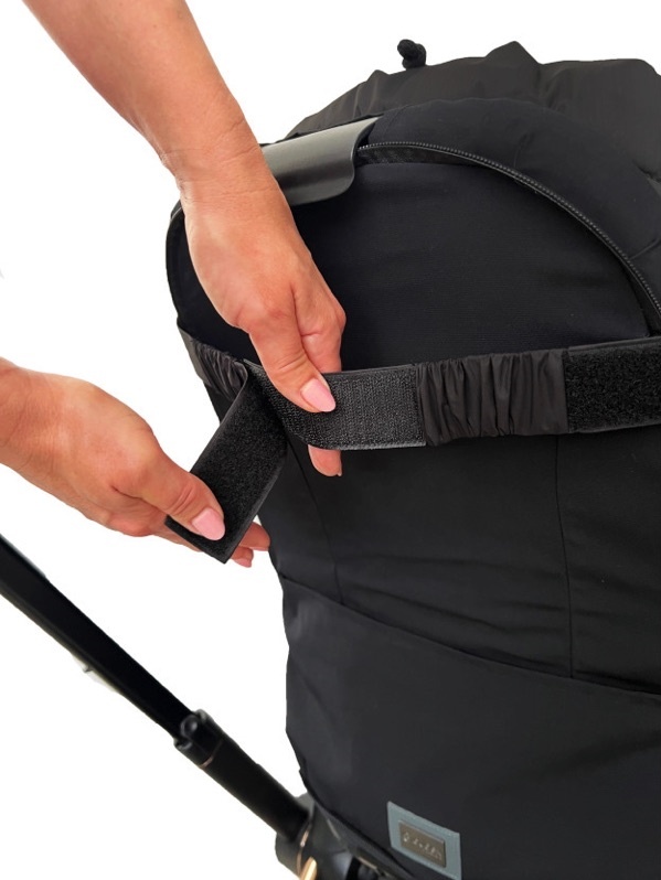 Зимний спальник MINI MOOSE PRIME имеет фирменные системы, предотвращающие смещение и соскальзывание спальника с коляски - противоскользящий коврик, стабилизирующий спальник в коляске, и две ленты-липучки, крепящиеся к ручкам коляски или ее спинке.