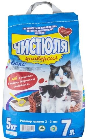 «Чистюля» Универсал" отлично комкуется, поглощает свыше 150% (по массе) жидкости, не задерживается на лапах и шерсти животных.