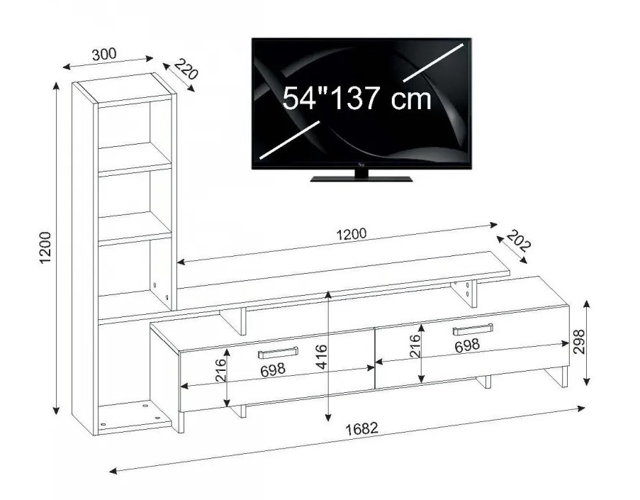 Габариты тумбы под ТВ168.2x120x22 см