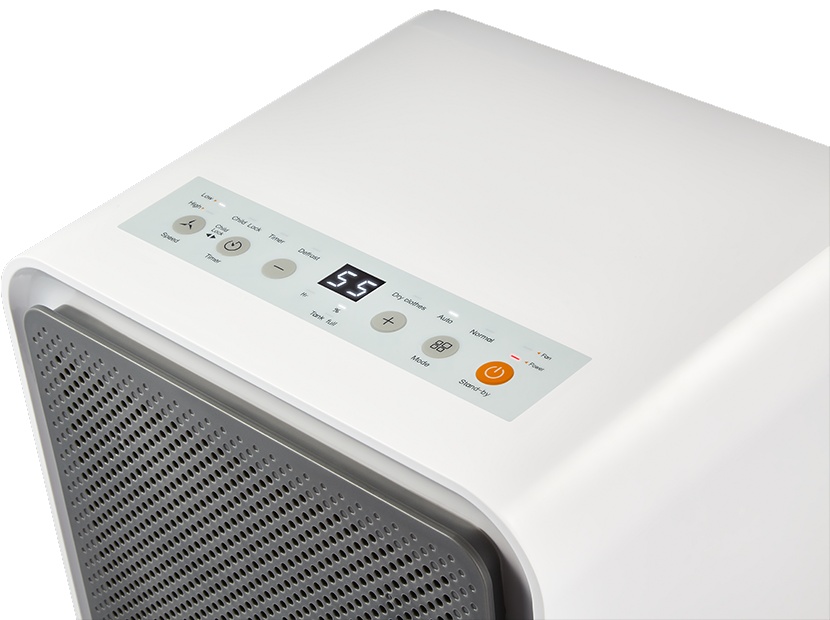 — в режиме Auto — прибор работает в зависимости от установленного целевого уровня влажности — 55% (данный показатель считается оптимальным для человека) — т.е. активизирует режим осушения, если уровень влажности превышает данный порог, и режим вентиляции, если текущий показатель находится на уровне, либо ниже;