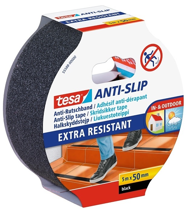 Tesa 55588 - Противоскользящая клейкая лента — эффективное средство, для безопасности на ступеньках, пандусах, скользких полах, лодочных корпусах. Предотвращает несчастные случаи, обеспечивая сильную и длительную адгезию с поверхностью пола. Не подвержена воздействию УФ лучей, устойчива к воздействию влаги, экстремальных температур и чистящих средств. В упаковке — 5 м ленты шириной 50 мм. Лента легко режется или отрывается руками в зависимости от ситуации. Надежно скрепляется с очищенными от загрязнений и обезжиренными плоскими поверхностями.