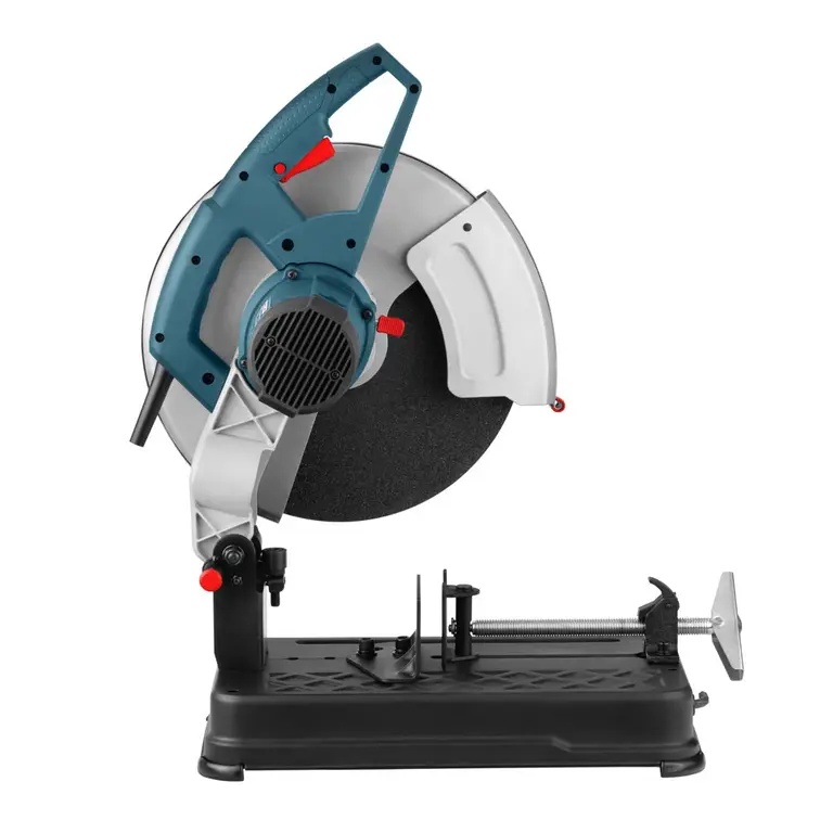 - Прочный отрезной круг диаметром 355 мм с системой блокировки шпинделя упрощает замену и обеспечивает безопасность механизма.