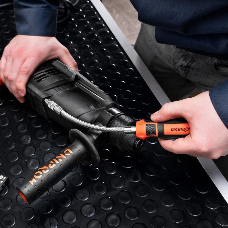 Отвертка Dnipro-M изготовлена из сверхпрочной стали S2 и имеет гибкий стержень, позволяющий работать в наиболее труднодоступных местах.