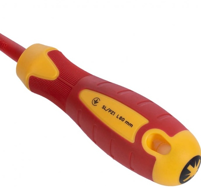 -Надежность. Отвертка изготавливается из стали S2 с твердостью 58 HRC, что гарантирует надежность и износостойкость. Благодаря такой технологии производства инструмент будет выносливым и прослужит долгие годы. Выдерживает напряжение 1000 В. Отвертка протестирована на оборудовании, которое имеет европейские сертификаты соответствия.