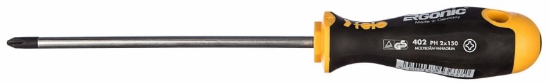 Крестовая отвертка PH 2X150 Felo Ergonic 40220510 применяется для работ с резьбовыми элементами, имеющими профиль PH. Стержень изделия изготовлен из хром-молибден-ванадиевой стали, благодаря чему имеет длительный ресурс работы и отличается высокой прочностью. Рукоятка с отверстием для подвеса выполнена из трехкомпонентного пластика, удобно ложится в ладонь, не скользит, имеет способность адаптироваться под руку пользователя. Эргономичная форма рукоятки позволяет работать с комфортом длительное время.