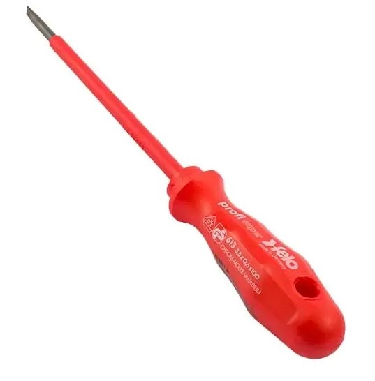 Диэлектрическая отвертка SL с плоским шлицом, изготовленная из хром-ванадиевой стали (CrV), специально разработана для работы в условиях, где есть риск контакта с электричеством. Этот тип отвертки имеет изоляционное покрытие, которое защищает пользователя от электрического тока при случайном касании к электрическим компонентам.