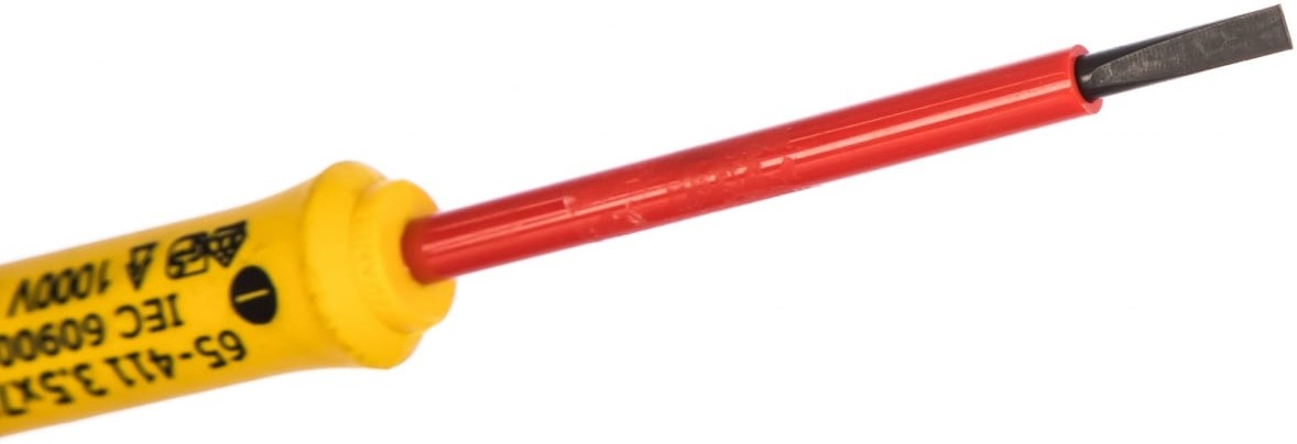 Диэлектрическая отвертка FATMAX 1000V 3.5×75 мм Stanley 0-65-411 применяется для монтажа и демонтажа резьбовых соединений с прямым шлицем, которые находятся под напряжением до 1000 В. Прочный стержень имеет полиамидное изоляционное покрытие, помогающее обезопасить работу оператора. Удобная большая рукоятка сужается к стержню, что обеспечивает больший крутящий момент и повышает точность закручивания.