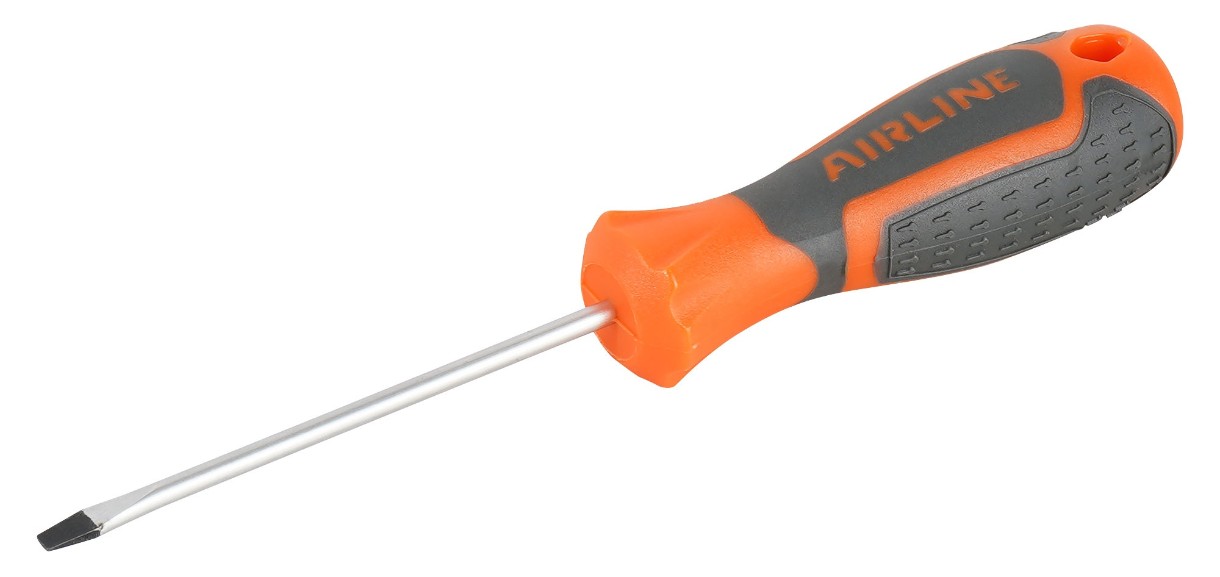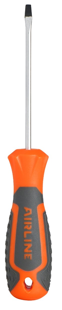 Сочетание твёрдых и мягких элементов рукоятки оптимально распределяет усилие, прилагаемое к инструменту, и предотвращает проскальзывание. Эргономичный дизайн облегчает работу. Отвёртки AIRLINE удобно подвешиваются за специальное отверстие. Лезвие отвёрток AIRLINE изготовлено из хром-ванадиевой стали, жало подвержено индукционной закалке и фосфатировано.