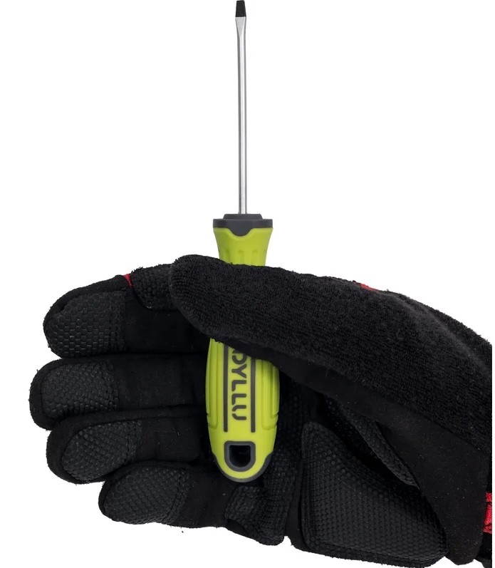 Компактная плоская отвертка с наконечником SL8 и лезвием длиной 200 мм станет надежным помощником для точных работ. Лезвие изготовлено из высококачественной стали Cr-V с черным кончиком, что обеспечивает устойчивость к коррозии и механическим нагрузкам. Круглый хвостовик гарантирует прочное соединение с ручкой, а намагниченный наконечник удерживает винты в нужном положении. Удобная ручка с мягкой накладкой снижает нагрузку на руки, делая процесс работы максимально комфортным.