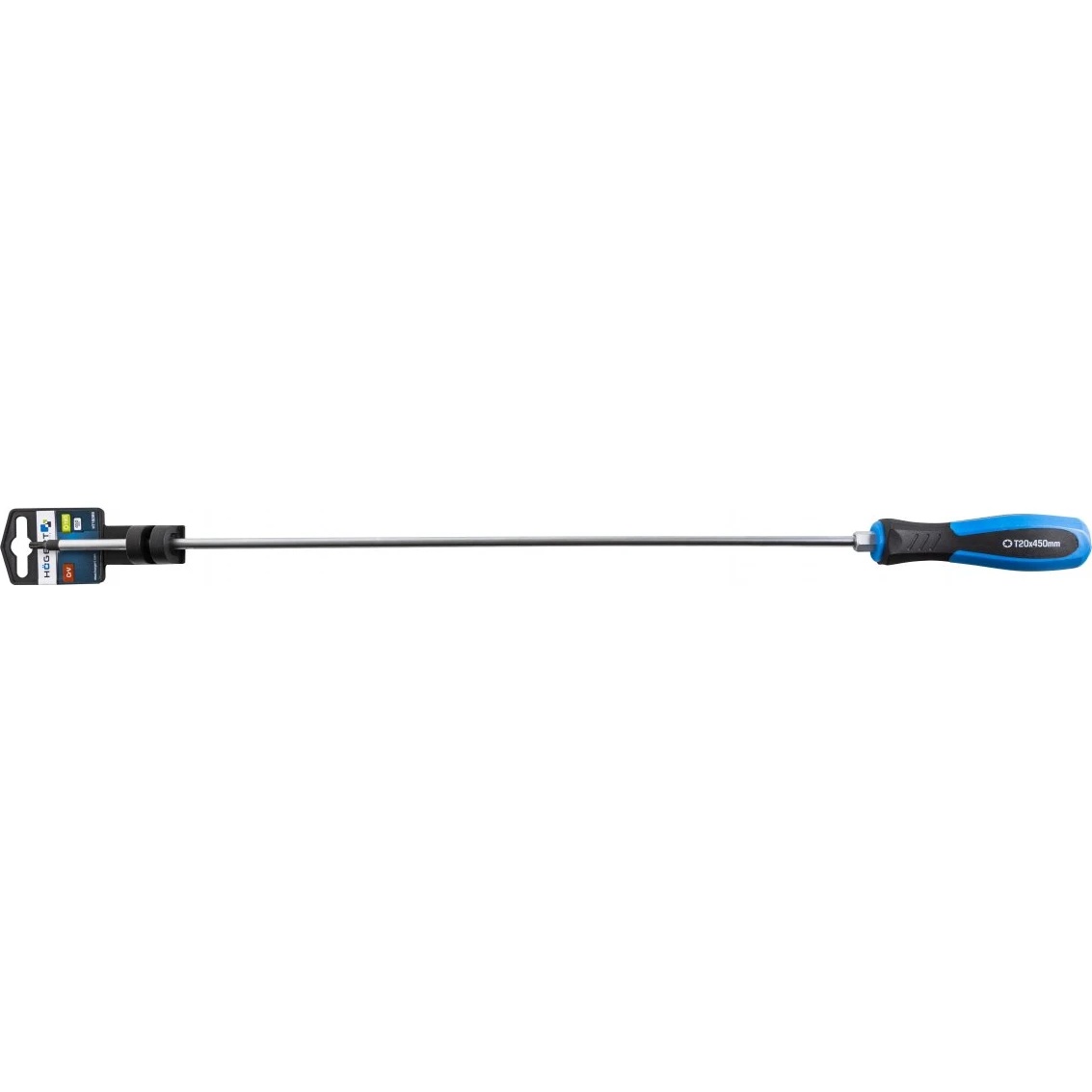 Длинная отвертка с Т-образной рукояткой, длиной целых 45 сантиметров, — это отличный инструмент для работы с винтами, находящимися в труднодоступных местах. Она изготовлена из прочной и устойчивой к деформации легированной хромованадиевой стали с закаленным наконечником. Ее намагниченность облегчает и ускоряет работу с винтами, особенно расположенными в местах, недоступных для пальцев рук. Эргономичная конструкция рукоятки обеспечивает комфорт использования при минимальных усилиях. Антискользящая поверхность облегчает точную работу и позволяет полностью передать усилие на винт.