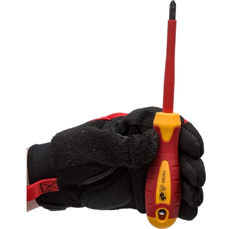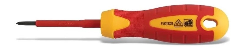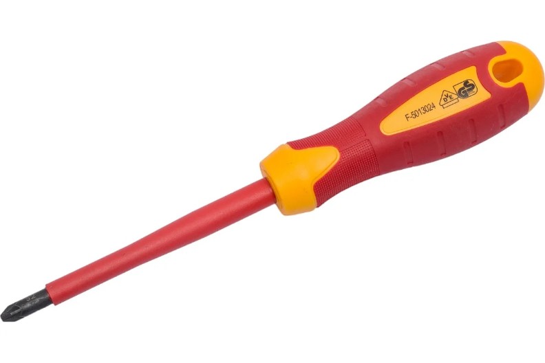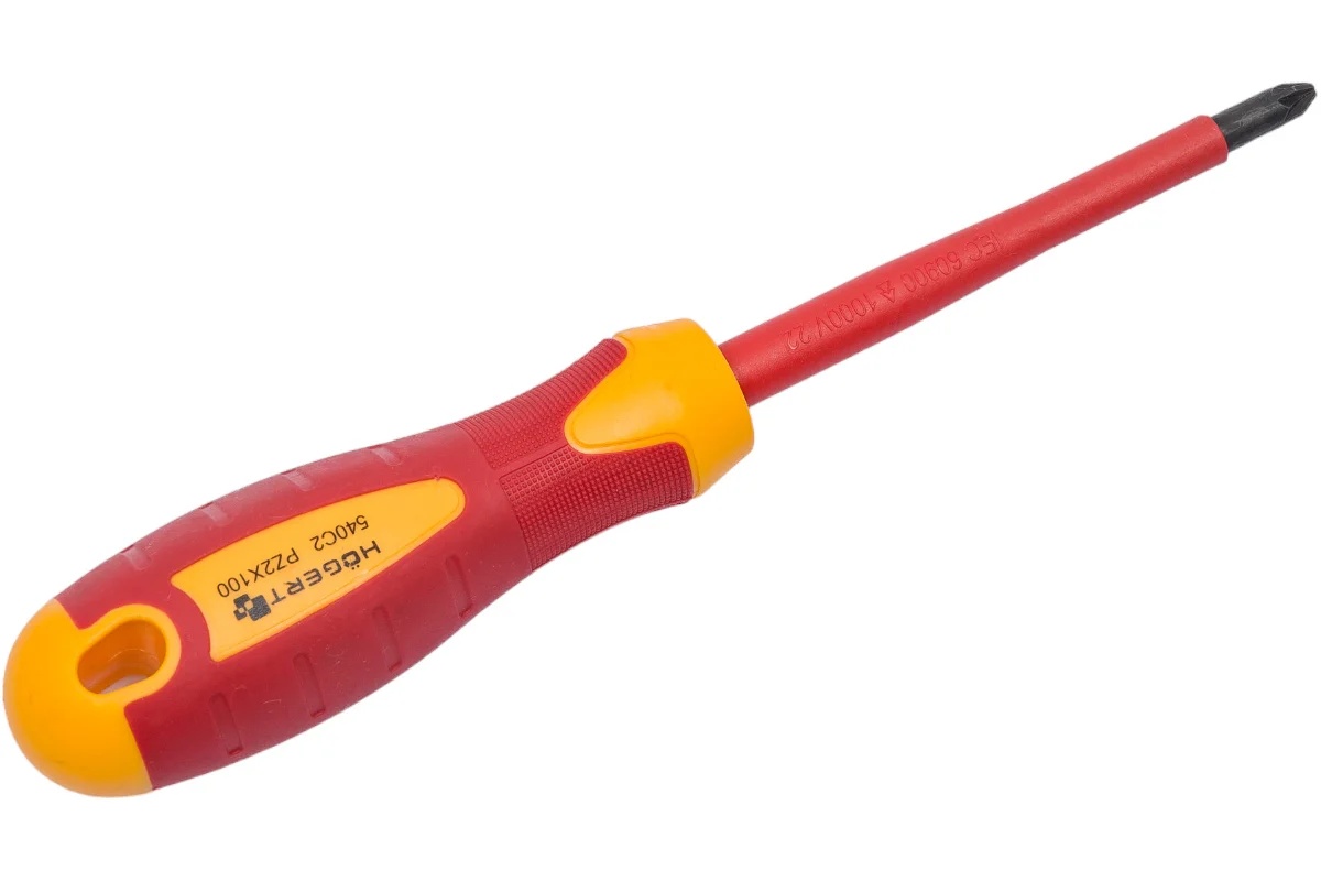Изолированная крестовая отвертка HOEGERT TECHNIK PZ2, 100 мм, 1000 V, сталь S2 HT1S944 оснащена высокопрочным стержнем из легированной стали. Он устойчив к истиранию, не деформируется при силовом вращении. Надежно закреплен в рукоятке.Слой защитной изоляции обеспечивает полноценную защиту от пробоя. Позволяет работать в сетях под напряжением.