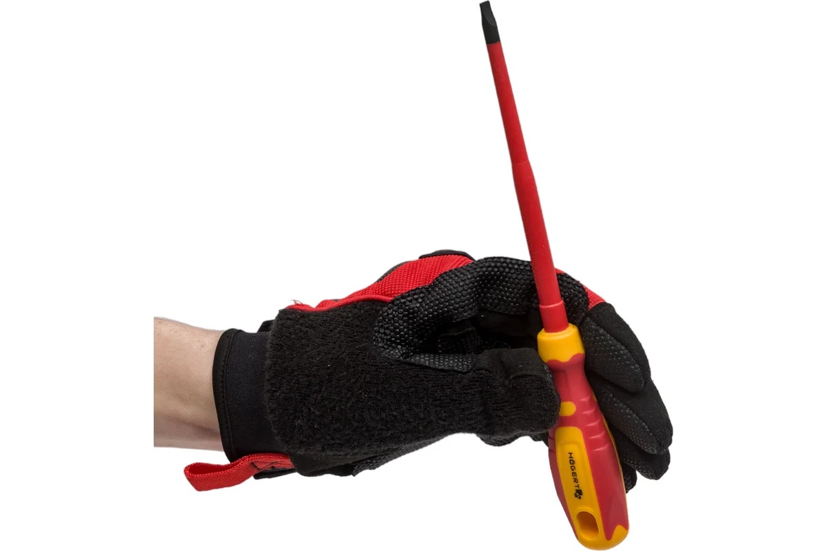 Изолированная отвертка с прямым шлицем HOEGERT TECHNIK SL5,5, 125 мм, 1000 V, сталь CrMo HT1S962 рассчитана на профессиональное применение с винтами и шурупами с прямым шлицем (SL)