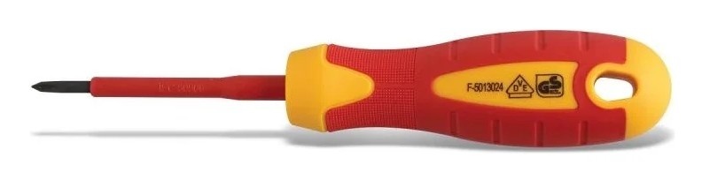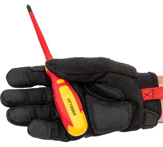 Изолированная крестовая отвертка HOEGERT TECHNIK PH1, 100 мм, 1000 V, сталь CrMo HT1S965 оснащена высокопрочным стержнем из легированной стали. Он устойчив к истиранию, не деформируется при силовом вращении. Надежно закреплен в рукоятке.Слой защитной изоляции обеспечивает полноценную защиту от пробоя. Позволяет работать в сетях под напряжением.